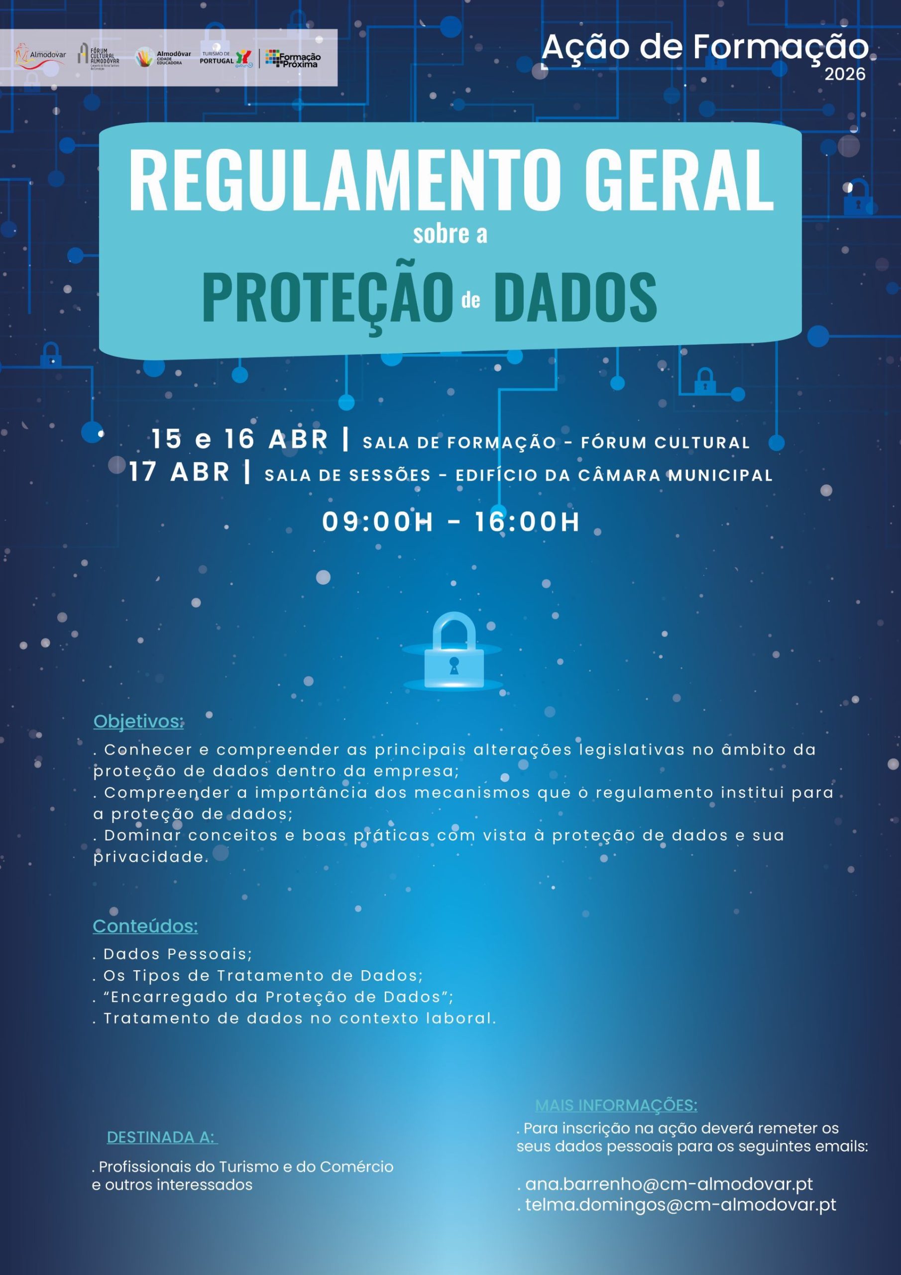 O Município de Almodôvar promove, nos dias 15, 16 e 17 de abril, uma ação de formação dedicada ao RGPD.