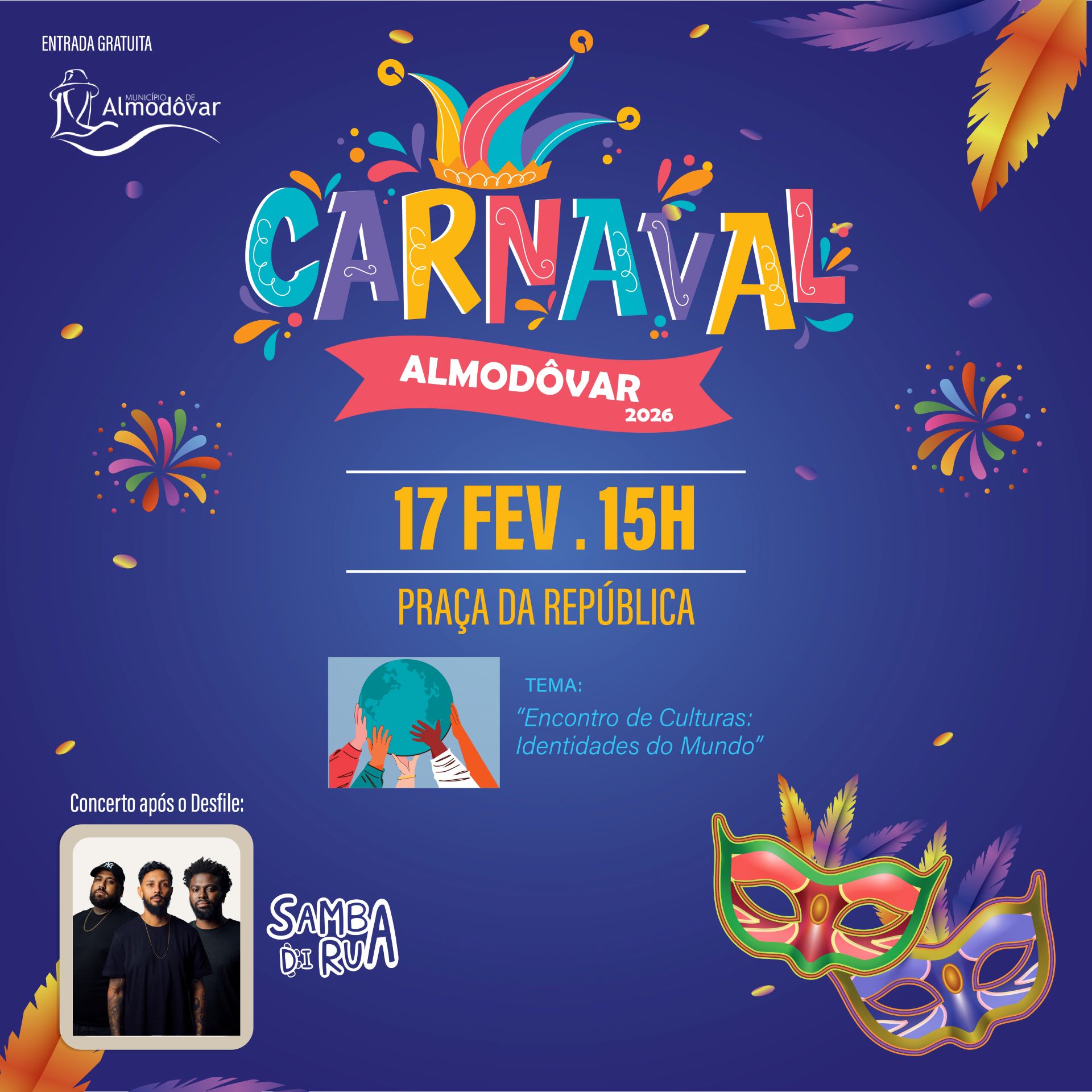 O Município de Almodôvar promove, no próximo dia 17 de fevereiro, pelas 15h, na Praça da República, o Carnaval Almodôvar 2026, este ano subordinado ao tema “Encontro de Culturas: Identidades do Mundo”.