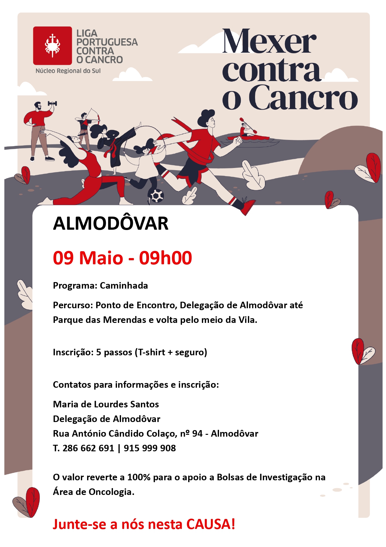 Os interessados poderão obter mais informações e efetuar a sua inscrição junto da Delegação de Almodôvar da Liga Portuguesa Contra o Cancro.